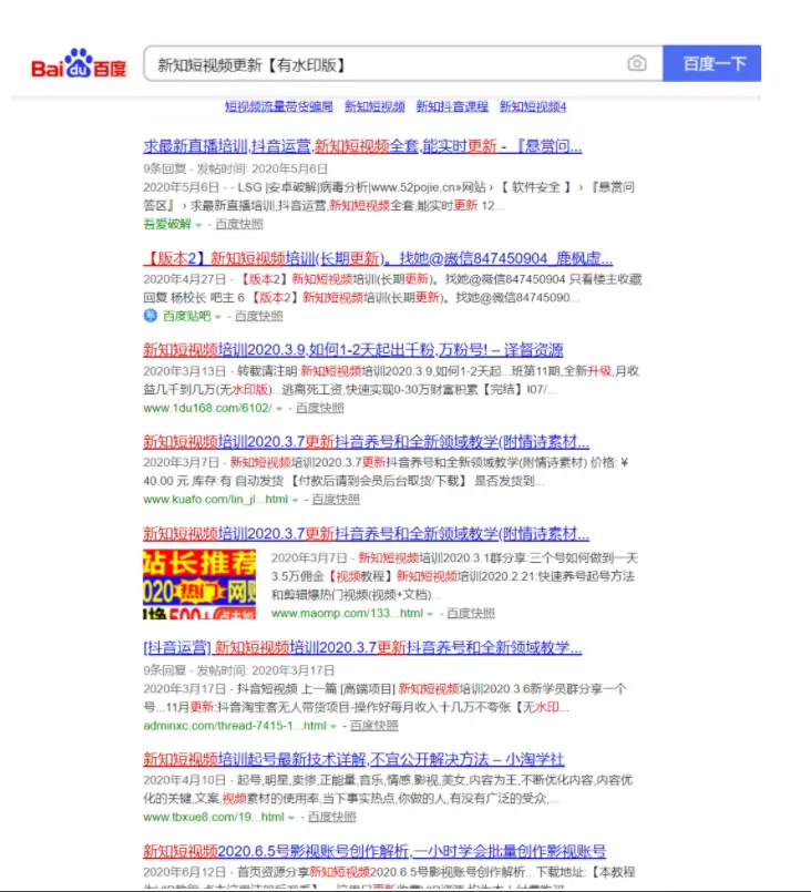 随便拿一个最近的知识付费课程举例,可以看到发布资源的真不少,这些都是百度有排名的,有兴趣的人会主动去这些网站付费购买!