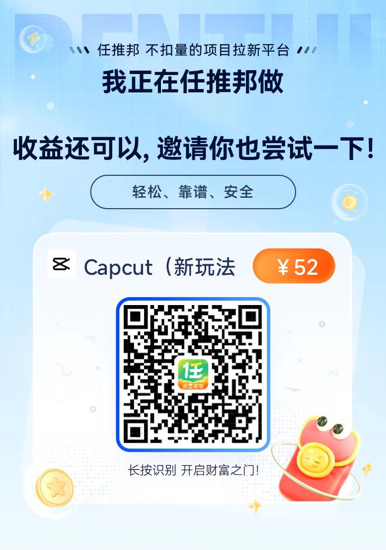 - 基础收益: 每成功邀请 1位 新用户通过你的链接下载并注册激活CapCut,你就能获得 ¥52!简单直接!
