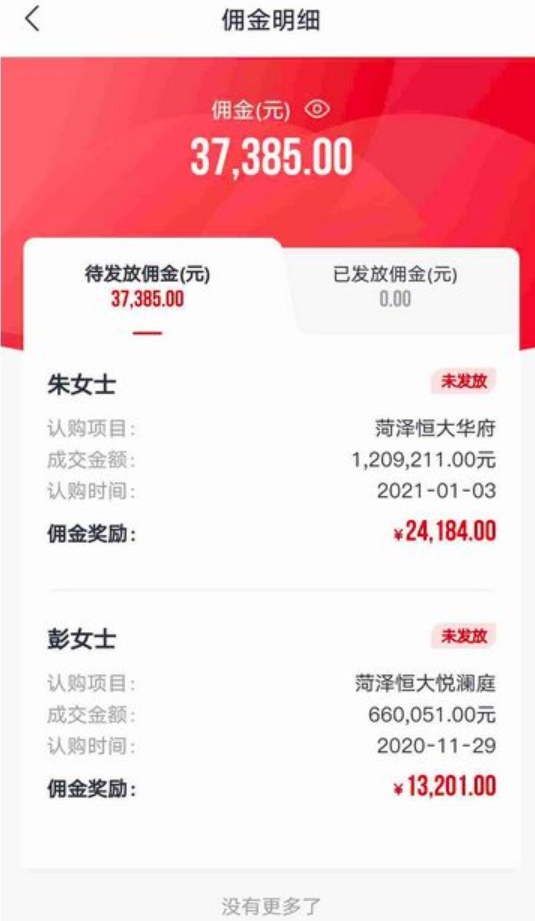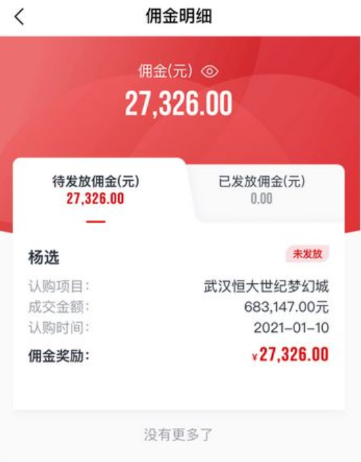 恒大的佣金截图,估计老司机们都是第一次见吧。佣金虽然不算高,但单价高啊!一单随便上万,足够吃一年泡面了!