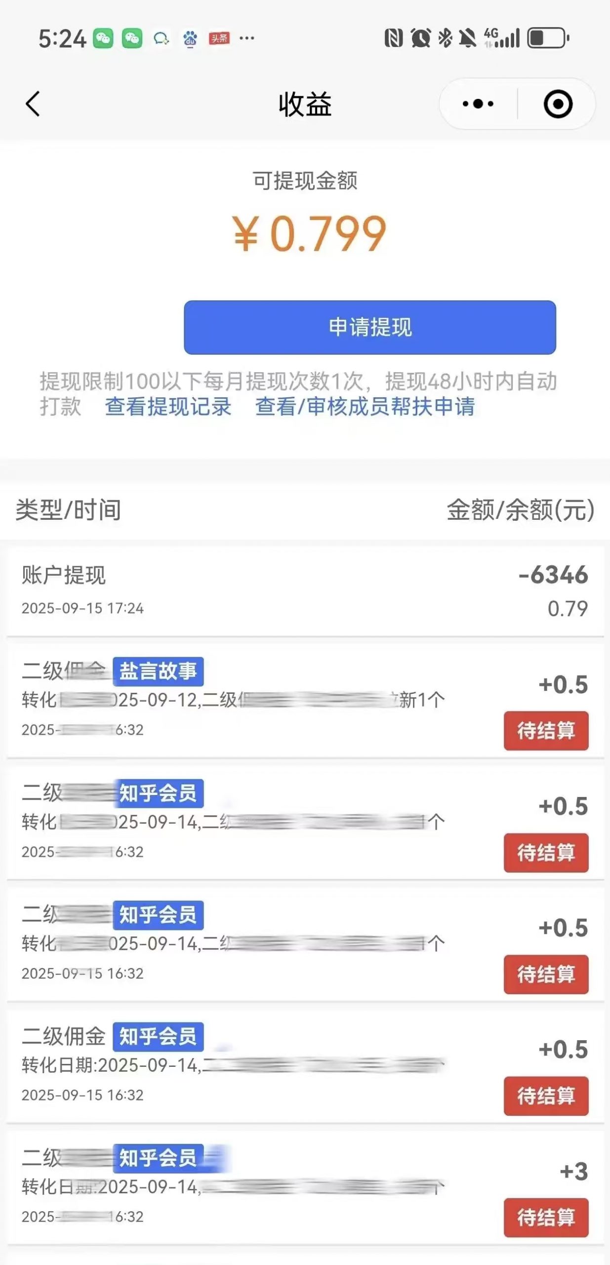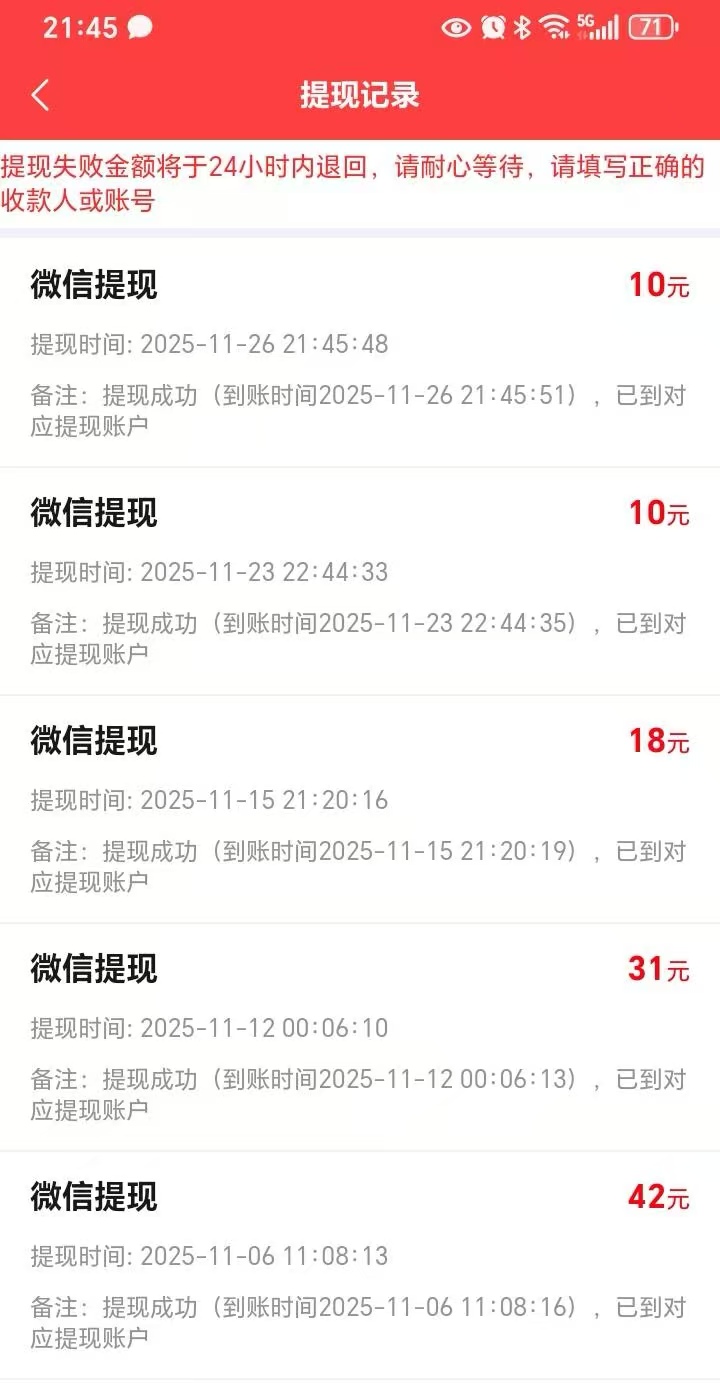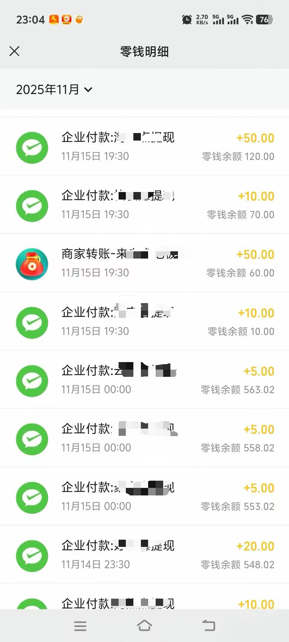 玄武阁软件2025年11月份部分用户任务收益反馈